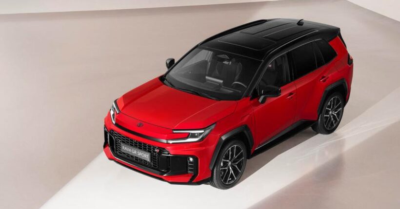 In partea din spate, stopurile sunt legate de o banda neagra, iar logo-ul RAV4 troneaza central. Versiunea GR Sport aduce elemente unice: jante negre de 20 inch (aproximativ 50,8 cm), grila frontala specifica si accente rosii in interior. Gasim aici si scaune sport imbracate in Alcantara, pedale din aluminiu si o suspensie special reglata pentru un comportament rutier mai sigur.